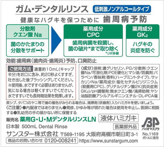 サンスター ガム デンタルリンス ノンアルコールタイプ 500mL はみがき 液体 オーラルケア