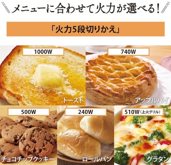 「上火グリル」つき「火力5段切替」。