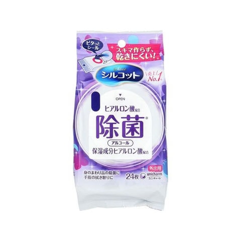ユニチャーム シルコット 除菌ウェットティッシュ アルコール ヒアルロン酸 外出 24枚 携帯用 持ち運び 使いきりタイプ ウェットティッシュ