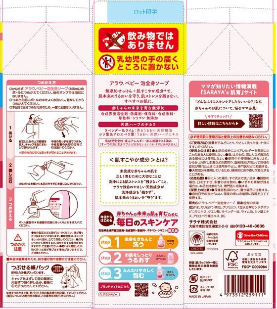 【お取り寄せ】 サラヤ アラウ.ベビー 泡全身ソープ 詰替用 800mL スキンケア ヘルスケア ベビーケア