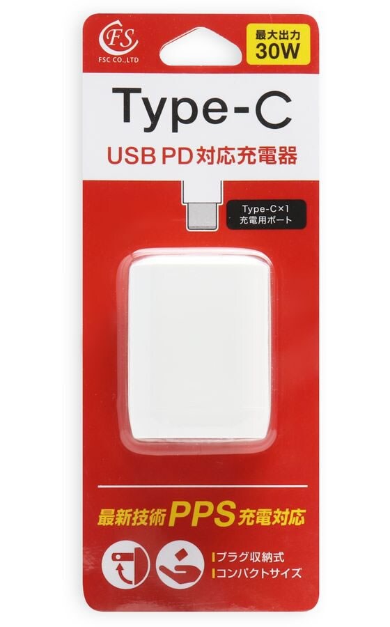 【お取り寄せ】 FSC AC充電器 PD30W対応 FS-PDAC30-WH AC式充電器 バッテリー 充電器 スマホ タブレット関連品