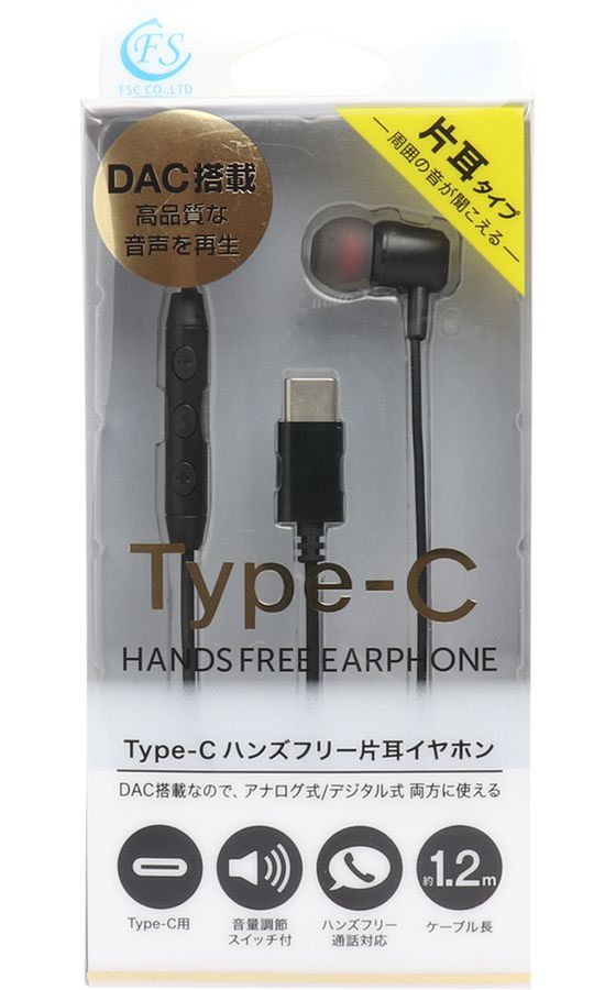 【お取り寄せ】 FSC Type-Cイヤホン 片耳 FS-CEMM02-BK ヘッドホン イヤホン オーディオ テレビ 家電