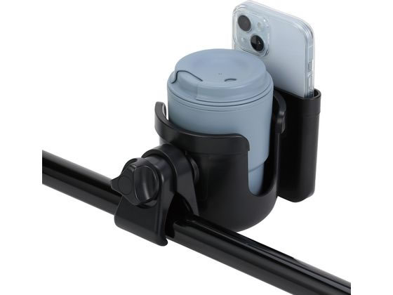 スマホ・ドリンクの2WAYホルダーです。幼児とのお出かけの際にもすぐにスマホやドリンクを取り出すことが出来ます。クリップでの取り付けなので、簡単です。φ40mm以下の取っ手に装着できます。