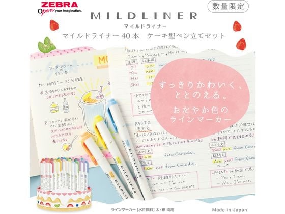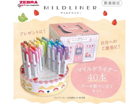 ゼブラ マイルドライナー40本 ケーキ型ペン立てセット WKT7-40-CAKE