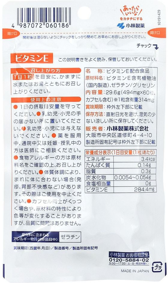 【お取り寄せ】 小林製薬 小林製薬の栄養補助食品 ビタミンE60粒 ビタミン サプリメント 健康食品
