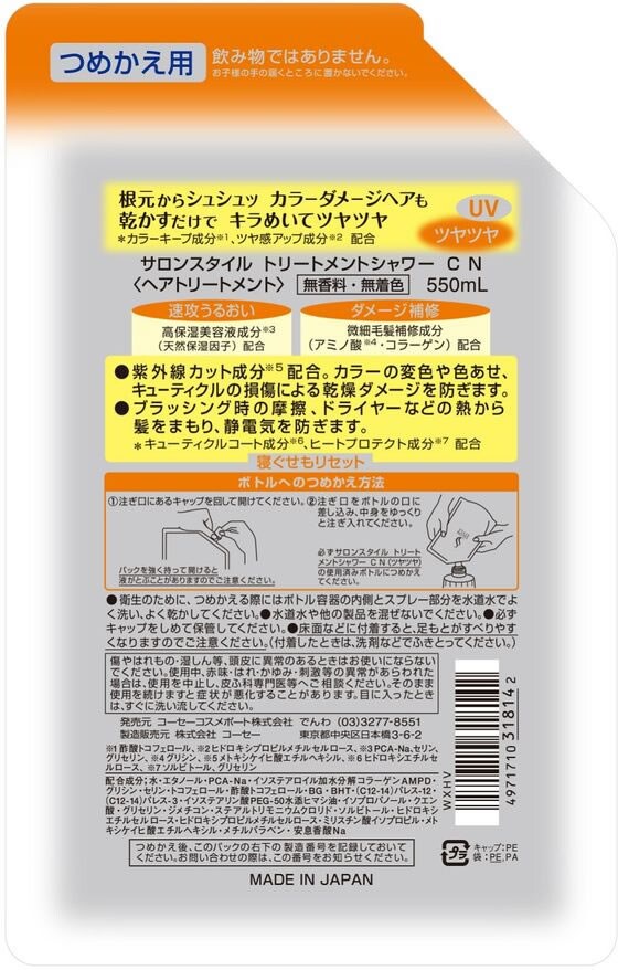 【お取り寄せ】 コーセー サロンスタイル トリートメントシャワー ツヤツヤ つめかえ用 550mL ヘアウォーター ミスト スタイリング ヘアケア