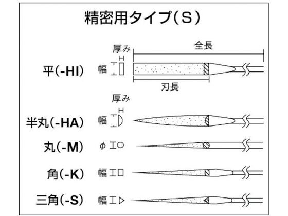 ●タイプ(精密用:仕上げ研削・修正・すり合わせ等、鉄工用:荒研削・剛性を要する重研削等)、種類(5・8・10・12本組:大きさの単位)、形状(平:平面用、半丸:R部用、丸:丸穴用、角:角穴用、三角:各部用)の中から用途に合ったものを選択ください。