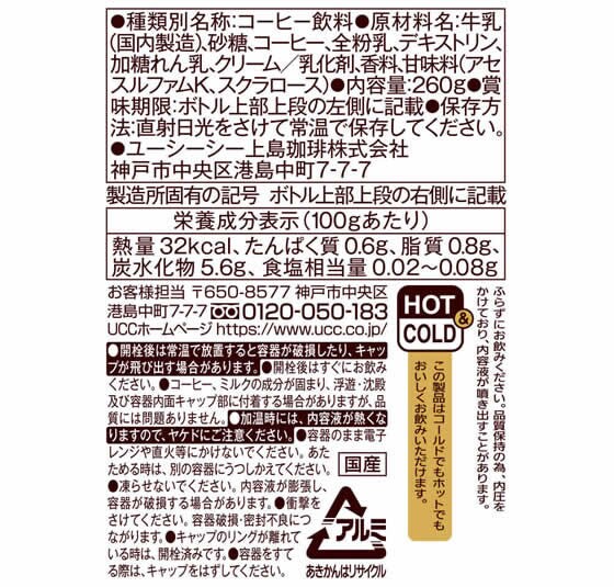 UCC THE COFFEE ミルク際立つカフェオレ 260g×24缶 カフェオレ 缶 コーヒー 飲料