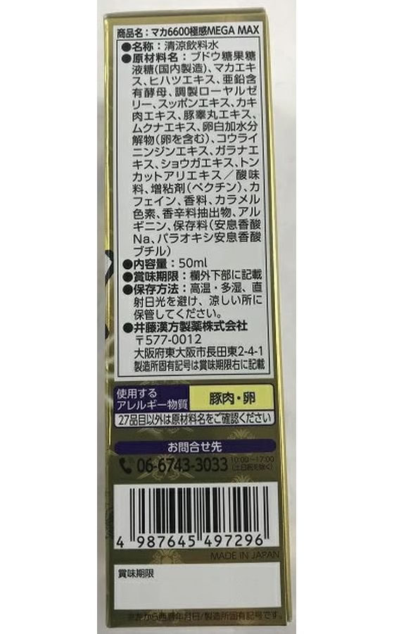 【お取り寄せ】 井藤漢方製薬 マカ6600極感MEGA MAX 50mL 栄養ドリンク エナジードリンク 栄養補助食品 健康食品