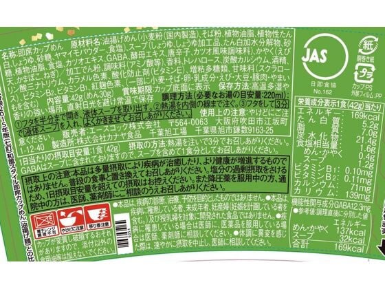 ※日本食品標準成分表2015年版(七訂)和風スタイル即席カップめん(油揚げ麺)との比較