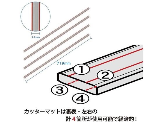 スライド式裁断機「ディスクカッター」シリーズの専用カッターマットです。ディスクカッターで裁断するたびにカッターマットの表面には、刃が回転した際の痕がついていきます。やがて痕が深く溝になるころには、ディスクカッターの切れ味が低下していきます。切れ味が低下した場合は、カッターマットの向きや面を変えてお使いいただけます。すべての面で劣化した場合は、新しいカッターマットとお取替えください。