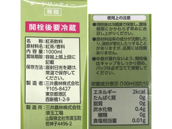 送料無料 三井農林 ホワイトノーブルリキッドティー ダージリン無糖 1L 12本 紙パック 紅茶 ココア 飲料