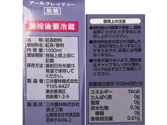 送料無料 三井農林 ホワイトノーブルリキッドティー アールグレイ無糖 1L 12本 紙パック 紅茶 ココア 飲料