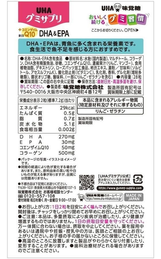 【お取り寄せ】 UHA味覚糖 グミサプリ DHA&EPA 14日分 28粒 EPA DHA サプリメント 健康食品