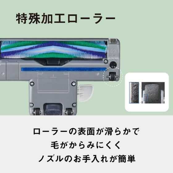 軽さと吸引力を両立させた「ハイパワー&コンパクトモデル」・本体質量2.8Kg/吸引仕事率580W。・大きく押しやすいコード巻取りボタン サイズ前年比117%。・取り回しのしやすい軽量コンパクトボディ&ビッグローラー