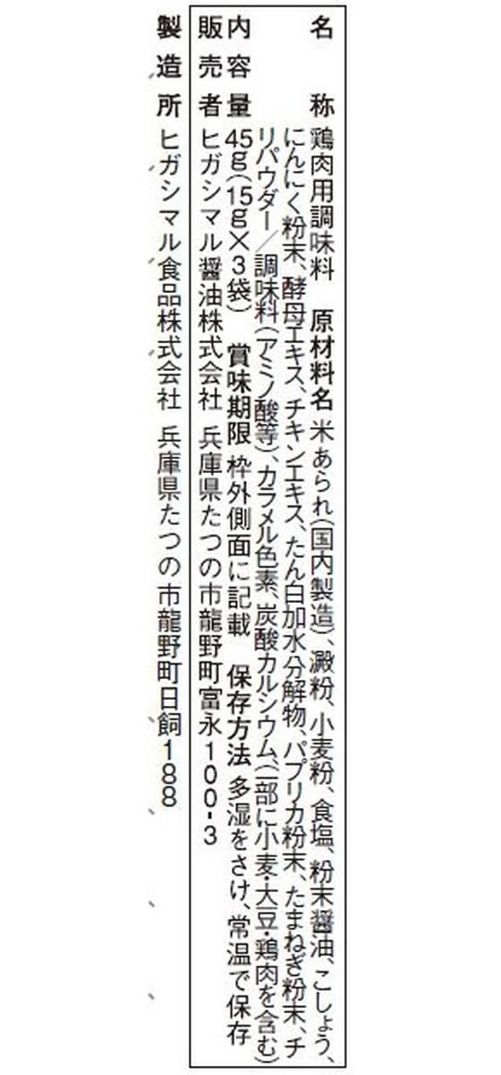 ヒガシマル醤油 揚げずにからあげ 鶏肉調味料 15g×3袋 唐揚げ粉 小麦粉 粉類 食材 食品