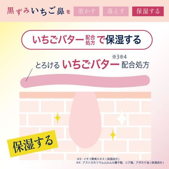 ●とろけるいちごバター処方とサリチル酸配合で、メイクや毛穴汚れをこすらずスッキリ落とす。