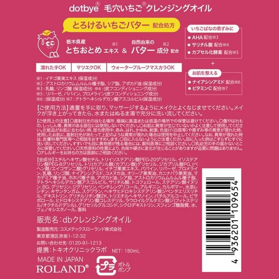 コスメテックスローランド dotbye 毛穴いちごクレンジングオイル 180mL