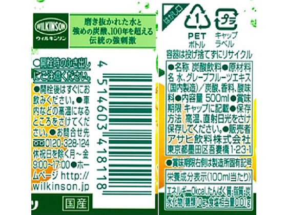 アサヒ ウィルキンソン タンサン クラッシュグレープフルーツ 500ml 24本