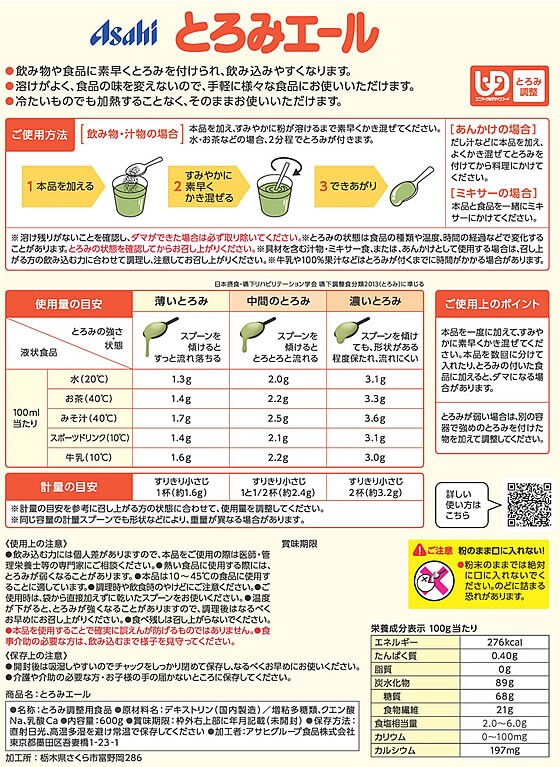 商品区分:特別用途食品・えん下困難者用・とろみ調整用食品
