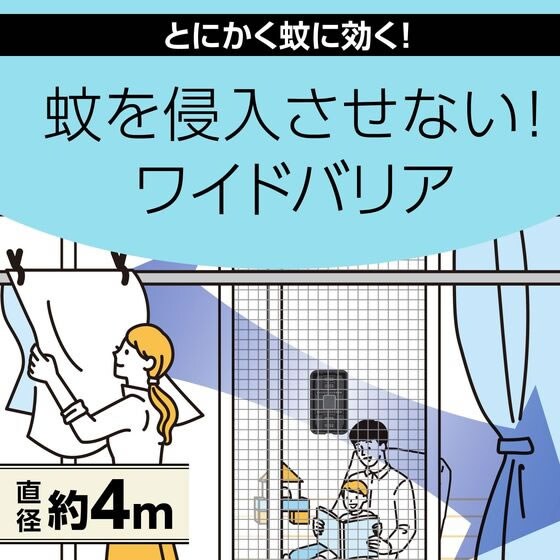 (1)屋内も屋外もしっかりガード・屋内への蚊の侵入阻止・屋外での蚊の忌避あみ戸1ヵ所あたり1個(直径4mあたり1個)を設置
