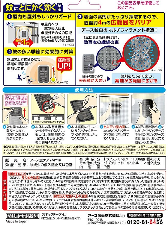 ●効果効能:蚊成虫の侵入阻止又は忌避