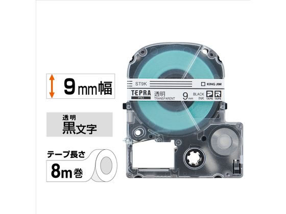 キング テプラPRO用テープ 9mm 透明 黒文字 5個 ST9K 透明 クリア PROテープ キングジム 事務機器