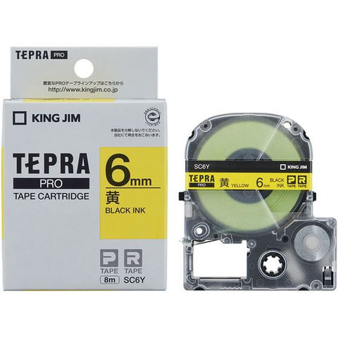 キングジム PRO用お買得パック 6mm 黄 黒文字 5個 SC6Y 黄 イエロー テプラPROテープ キングジム テプラ 事務機器