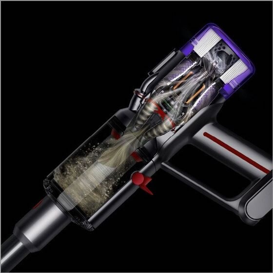 Dyson Hyperdymium モーター。小型で軽量のモーターが毎分最大104000回転し、パワフルな吸引力を生み出します。