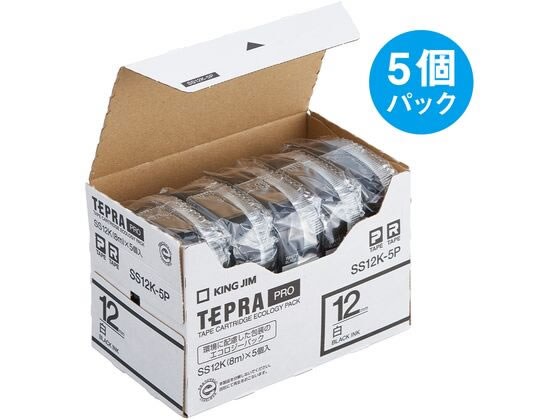 キングジム テプラPROテープエコパック 12mm 白/黒文字 5個 白 ホワイト テプラPROテープ キングジム テプラ 事務機器