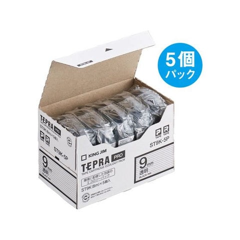 キングジム テプラPROテープエコパック 9mm 透明/黒文字 5個 透明 クリア PROテープ キングジム 事務機器