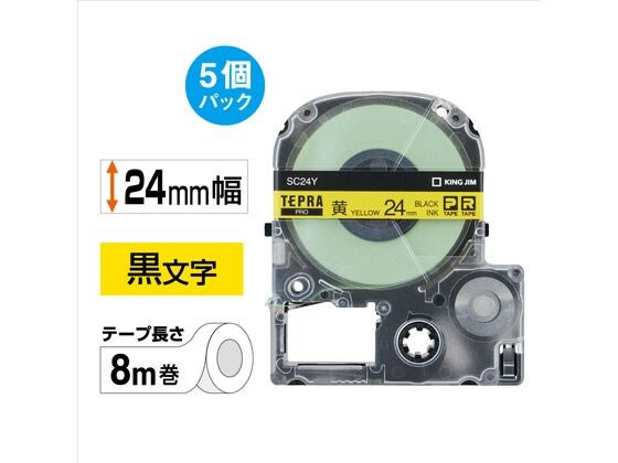 キングジム テプラPROテープエコパック 24mm 黄/黒文字 5個 黄 イエロー テプラPROテープ キングジム テプラ 事務機器