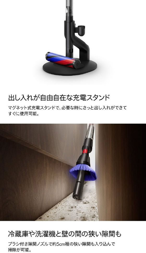 ●付属品:ブラシ付き隙間ノズル、マグネット式充電スタンド