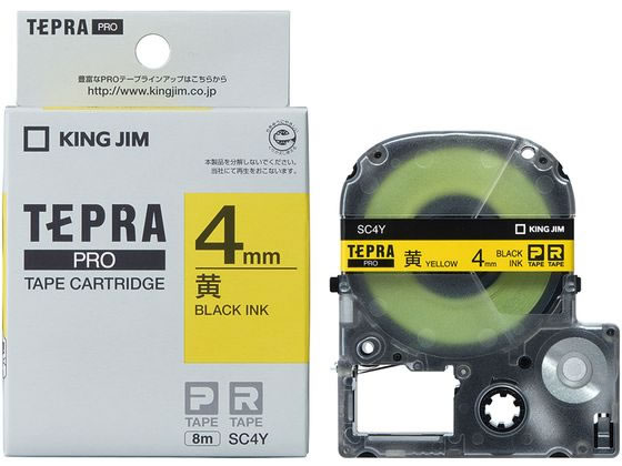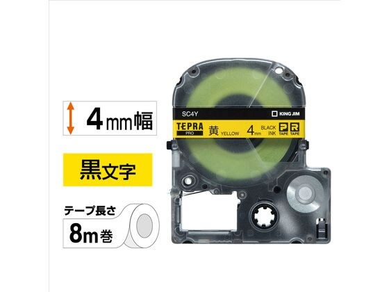 キング PRO用テープ パステル 4mm 黄 黒文字 SC4Y 黄 イエロー テプラPROテープ キングジム テプラ 事務機器