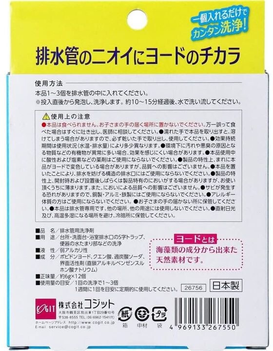 【お取り寄せ】 コジット 排水管のニオイにヨードのチカラ 12個 26756 排水口用洗剤 キッチン 厨房用洗剤 洗剤 清掃