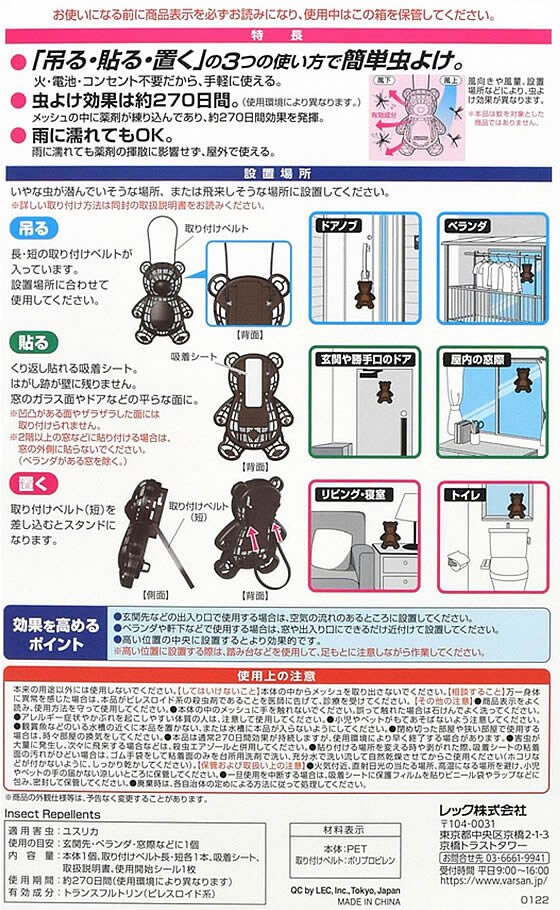 レック バルサン虫こないもん 3WAY クマ270日 虫除け 殺虫 防虫剤