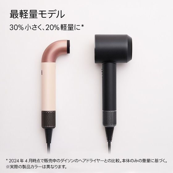 ※2:2024年4月時点で販売中のダイソンのヘアドライヤーとの比較。本体のみの重量に基づく。