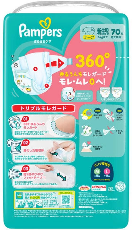 【メーカー直送】P&G パンパース さらさらケアテープ スーパージャンボ新生児70枚*4のレビュー