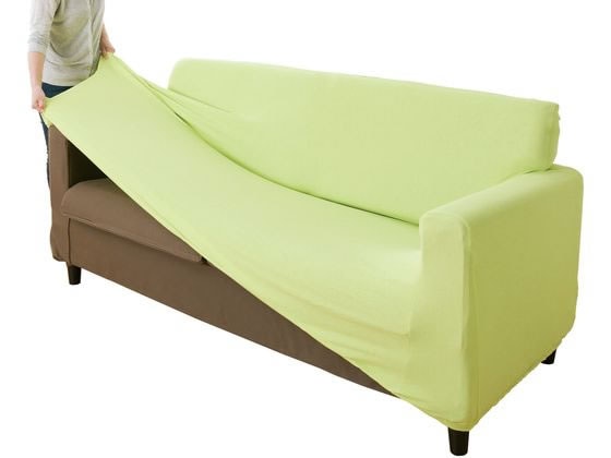 伸縮性のある生地なので、ソファにぴったりフィット。かぶせるだけで新品のソファのように変身。