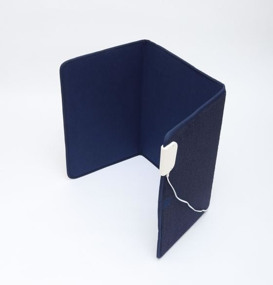 ベルクロバンド付きで厚さ約5cmフラットに収納可能。