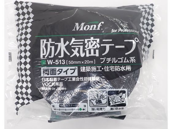 古藤工業 両面防水気密テープ 幅50mm×長さ20m 黒 W-513 防水両面テープ 両面テープ 粘着テープ 梱包