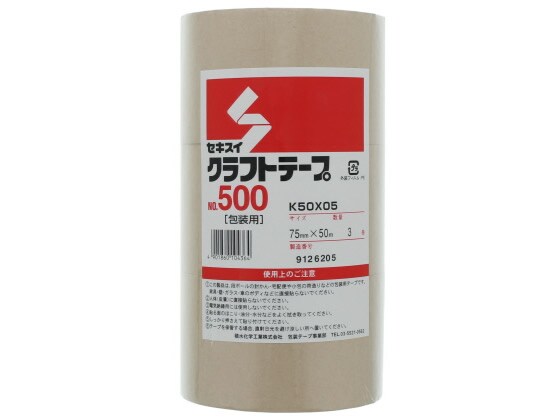 送料無料 セキスイ クラフトテープ 75mm×50m 30巻 NO.500 茶 黄土 クラフトテープ ガムテープ 粘着テープ 梱包