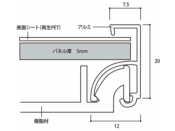 ●材質:フレーム/アルミ、表面シート/再生PET材、背板/再生PS材