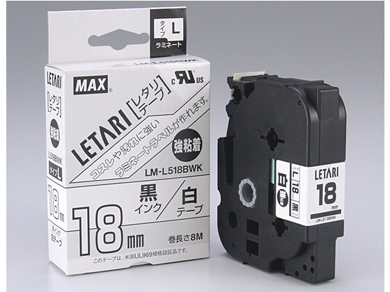 マックス レタリテープ強粘着 白 黒文字18mmLM-L518BWK LX90632 ラベルプリンター 事務機器