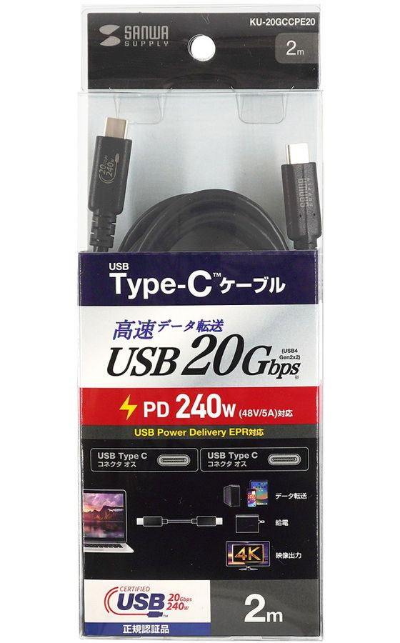 【お取り寄せ】 サンワサプライ USB20Gbps Type-C ケーブル 2m KU-20GCCPE20 USBケーブル C to ケーブル 電源タップ 配線パーツ 家電