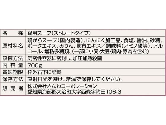 さんわ 名古屋コーチン地鶏だし 塩にんにく鍋つゆ 8180