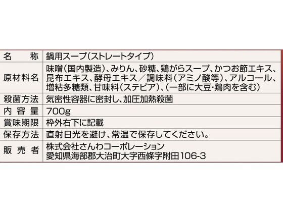 さんわ 名古屋コーチン地鶏だし 味噌鍋つゆ 8182