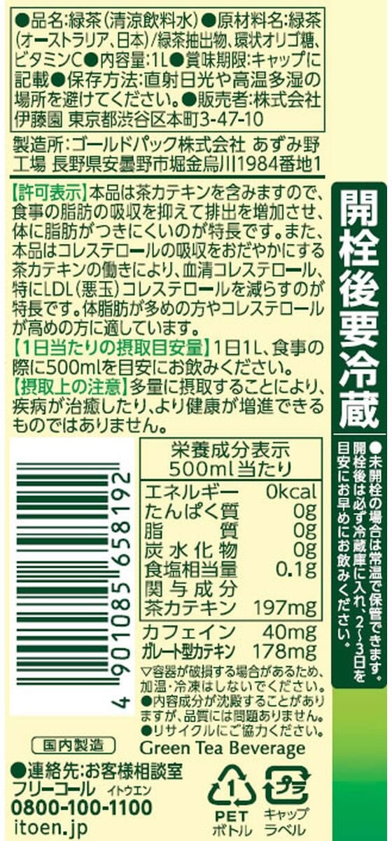 伊藤園 お~いお茶 カテキン緑茶 1L×12本