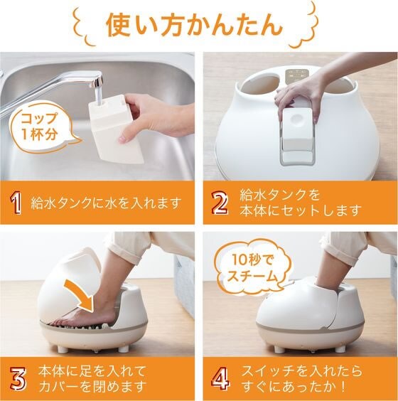 コップ1杯の水で手軽に使える♪スイッチを入れて10秒でスチームが噴き出る足用サウナの登場です!