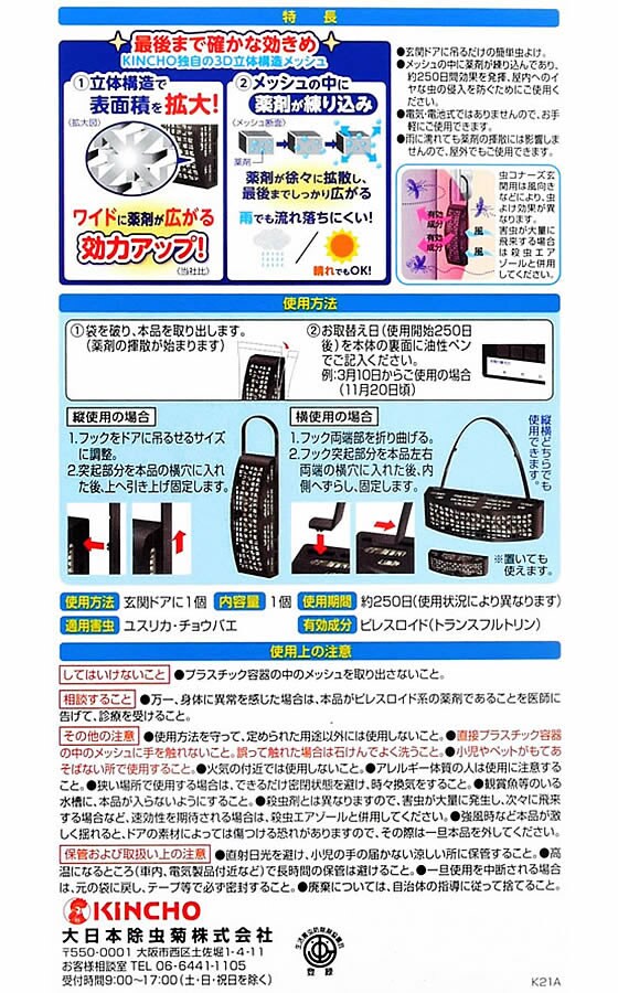 金鳥 虫コナーズ 玄関用 250日 無臭 置き型タイプ 殺虫剤 殺虫 防虫剤